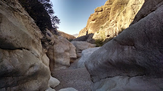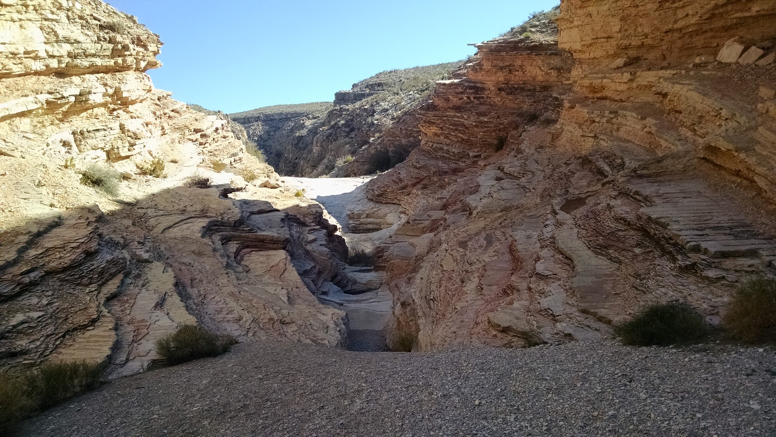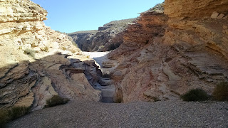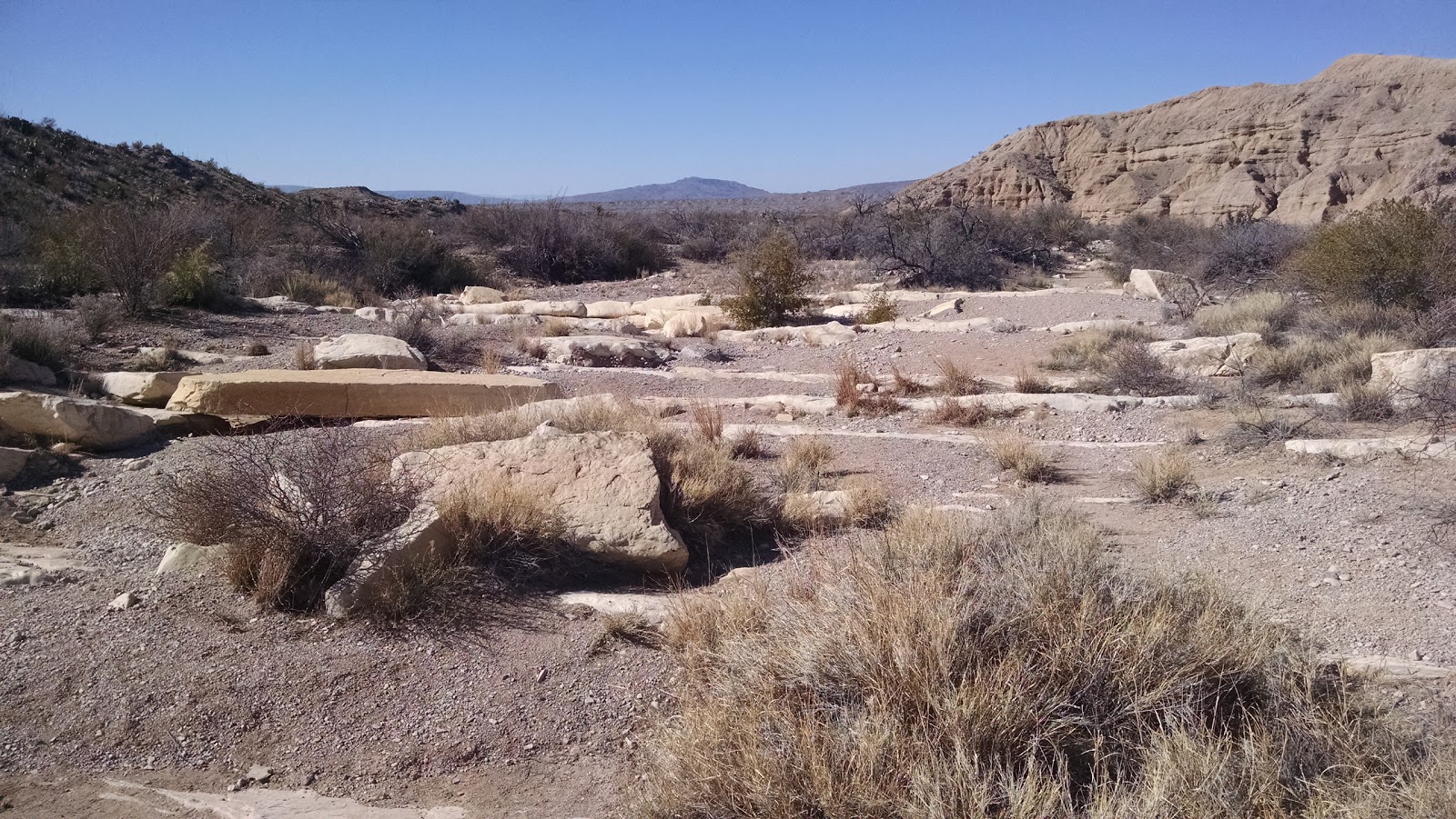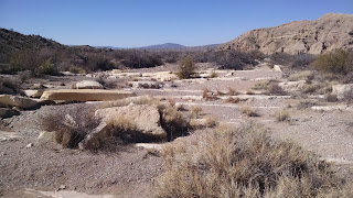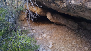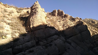 After a quick breakfast of peanut butter and jelly, we headed to the nearby Ernst Tinaja trail for a hike. The trailhead was just down the road from us. We headed in and within minutes we had left the sun behind and were in a cool, shady canyon. We quickly came to the first tinaja which is a steep sided hole in a rock filled with water. If animals fall into them, they have a hard time getting back out and die there. The actual trail is quite short but you can go well beyond it. We climbed up and down over many boulders and saw several more of the watering holes. The rock formations were beautiful. You could clearly see that many of them had once been lava. We went as far as the terrain would allow then made our way back to the trailhead.