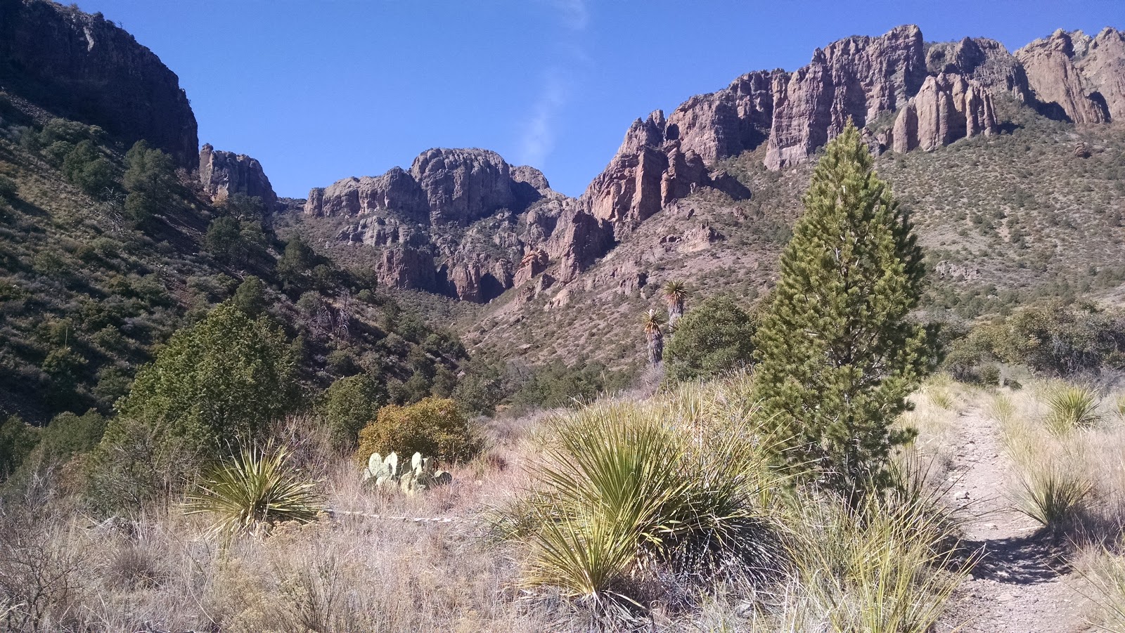 Today was our last full day in Big Bend. Two weeks went by so quickly. We headed out early to hike the Pine Canyon trail. It was the first hike we took when we came last year. It has a small waterfall that runs if there is enough rain. We saw it last time because it was a wetter than usual spring but this year has been dry. We have however been told by several people that it is a good place to see bears including a mother with several cubs so we are hoping for a sighting. From a distance of course.