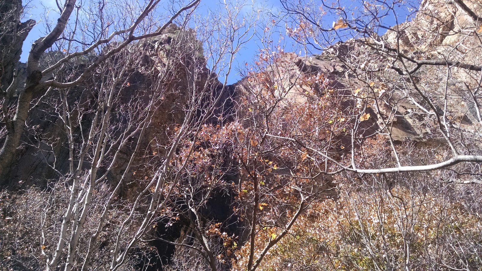 The first part of the trail is in the desert. Shortly into our hike, we began to see what we thought was bear scat on the trail and it looked fresh so Francis was very excited about our chances of seeing a bear. We kept a sharp eye out as we entered the tree covered part of the trail. We had been told bears like the ravines alongside the trail. We ran into a couple with their young daughter taking a rest before hiking to the top. They did not seem as excited about the possibility of seeing a bear as we were. They let us go on ahead of them while they rested a bit longer. The trail gets a bit steep toward the end but brings you to a beautiful open area where the waterfall sometimes appears. We climbed a big rock to enjoy the sun and look out for the bears we were promised. Before too long, the couple and their daughter made it to the top as well.