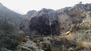 We headed to the nearby Sitting Bull Falls State Park in New Mexico. It was a beautiful park with lots of space for picnicking. We hiked the short distance to the waterfall. You can view it from the top or walk down to the bottom of the falls. We took the trail to the bottom.