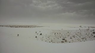 Fortunately, we had plenty of wood to get a fire started quickly. We warmed up with some coffee around the fire and made our plans for the day.We were going to White Sands National Monument about 40 miles away. Greg and Beata headed to the waterfall for some pictures then we got on our way.