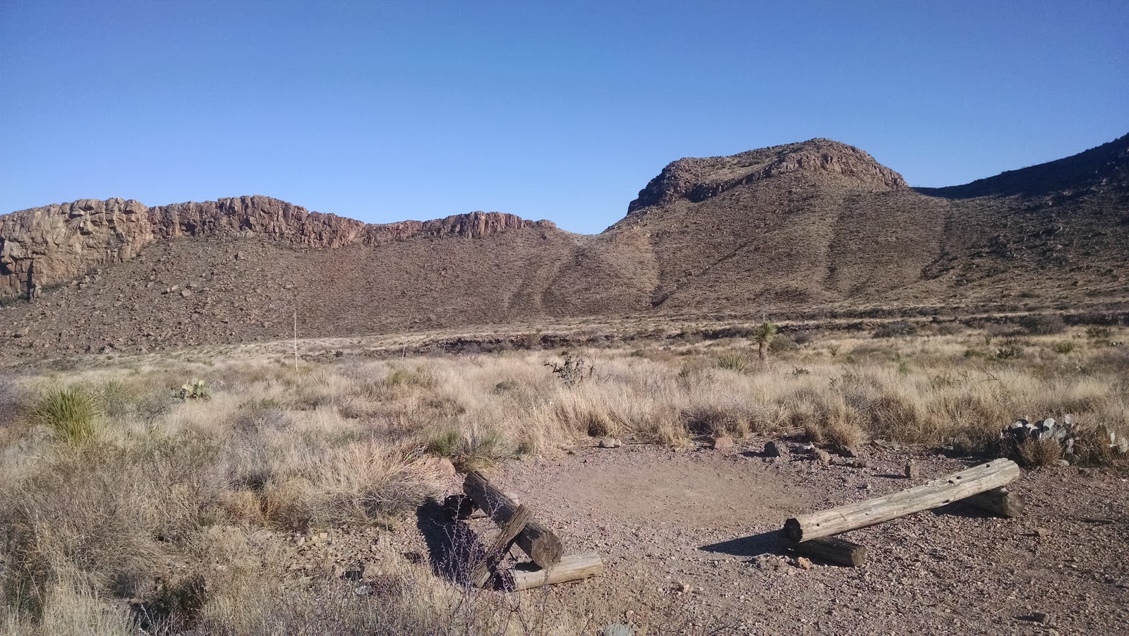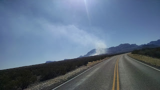 When we made it to the small town of Marathon, we knew we were almost to Big Bend. About another hour of driving brought us to the entrance to the park. From there it was still quite a ways to the Visitor Center at Panther’s Junction. The drive brought back great memories of our trip here last spring. As we were driving we noticed a lot of smoke a distance away. We made it to the ranger station at about 1 o’clock. We talked to the ranger on duty about our back country permit. She gave us a binder full of pictures and descriptions of all the primitive drive in sites in the park. She also let us know that there was a wildfire and although it was almost contained, a few sites were temporarily off limits due to the fire. I had a few ideas from my internet research. We wanted privacy, good views, and roads that would not be too hard on our vehicle. While we were choosing, another ranger, an older gentleman, offered us his help. He knew a great deal about the park and gave us some good suggestions as well as some places to explore that were off the beaten path. With our choices made, we returned to the desk and got our pass for the next 14 days for only $12 for the entire visit. We selected two campsites for one week each, Pine Canyon # 3, and Rice Tank. We were told if at any point we wanted to change sites we could just go to any ranger station to revise our permit.