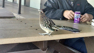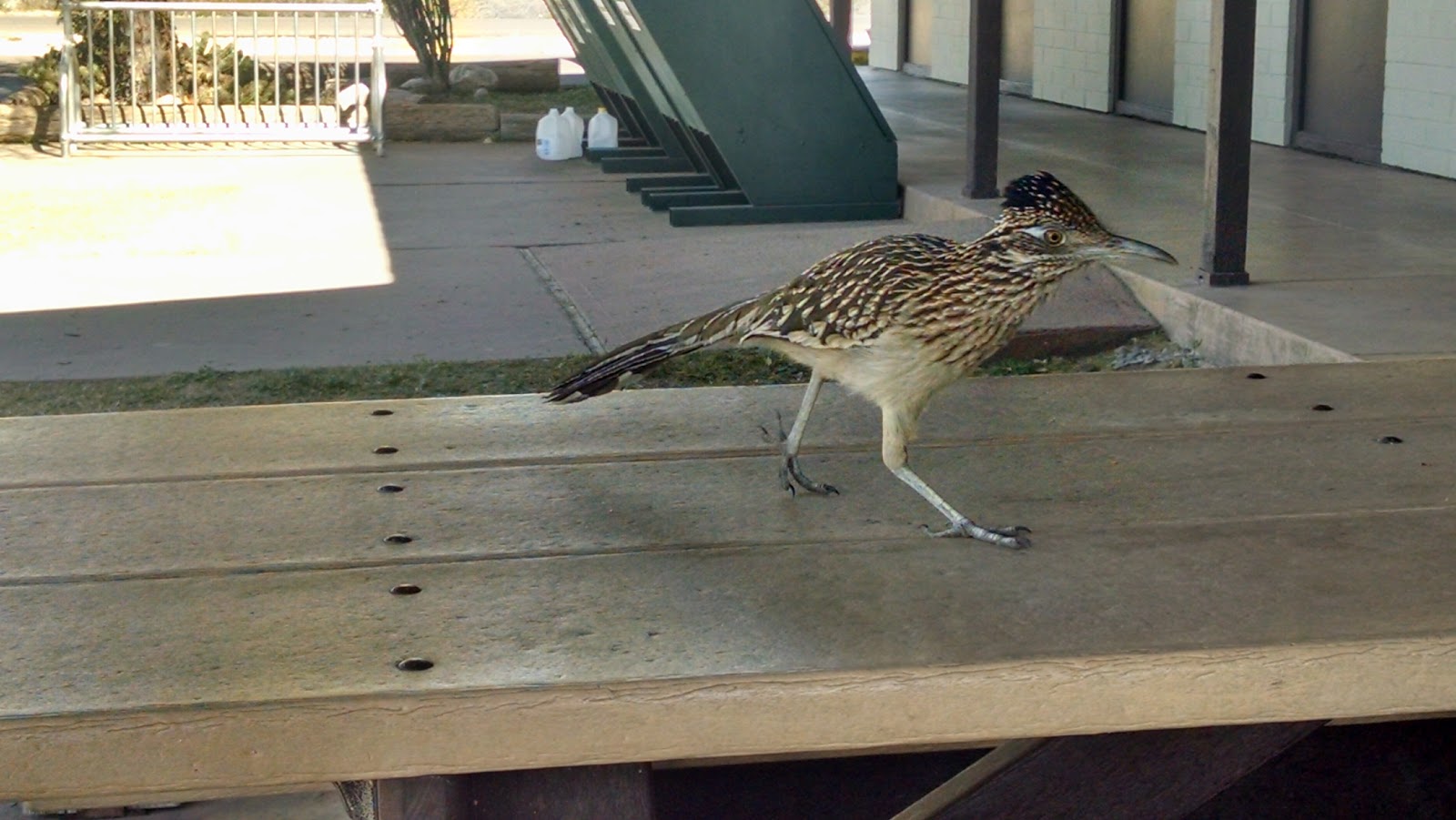 After breakfast we headed back to Rio Grande Village for more water and to use the wifi. Being in the desert has us going through water like crazy. While on the road, we ran into the same ranger who helped us when we first arrived at the park. He gave us some more suggestions for places we could drive and told us we could hike anywhere in the park not just on established trails. While sitting outdoors at a picnic table in Rio Grande Village, we noticed a very brave roadrunner hop right up on the table next to us clearly hoping for a bite of the man’s lunch.