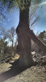 On the way back to camp we decided to check out Dugout Wells. We were intrigued when we saw the taller and greener than average trees there. That always means water nearby.We liked the area  immediately because it had the nicest, cleanest outhouse we have ever encountered. We took a walk through the shady picnic area and then took the short nature walk which had lots of information about plant life in the desert.