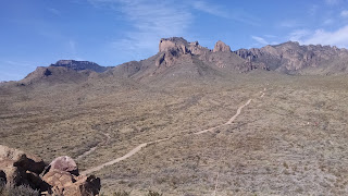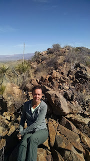 We liked Guy’s idea of hiking to the top of the nearby ridge especially now that we knew there was no park restriction against it. We picked a route we thought could easily get us to the top. We quickly found ourselves at the top with an incredible view of the Pine Canyon area including our campsite. We also had full signal so we sent some emails and texts and made some calls. When we were ready to head back, we realized the way down was a lot tougher than the way up. We tried a couple different routes before we finally ended up doing a crab walk down the steepest areas. It took us about 3 times as long to get down as it did to climb up. We could see Guy’s campsite on our way down and hoped he was not watching our less than dignified descent. We made it to the bottom safely with only a few cactus thorns in our pants and a small tear in one of my back pockets.